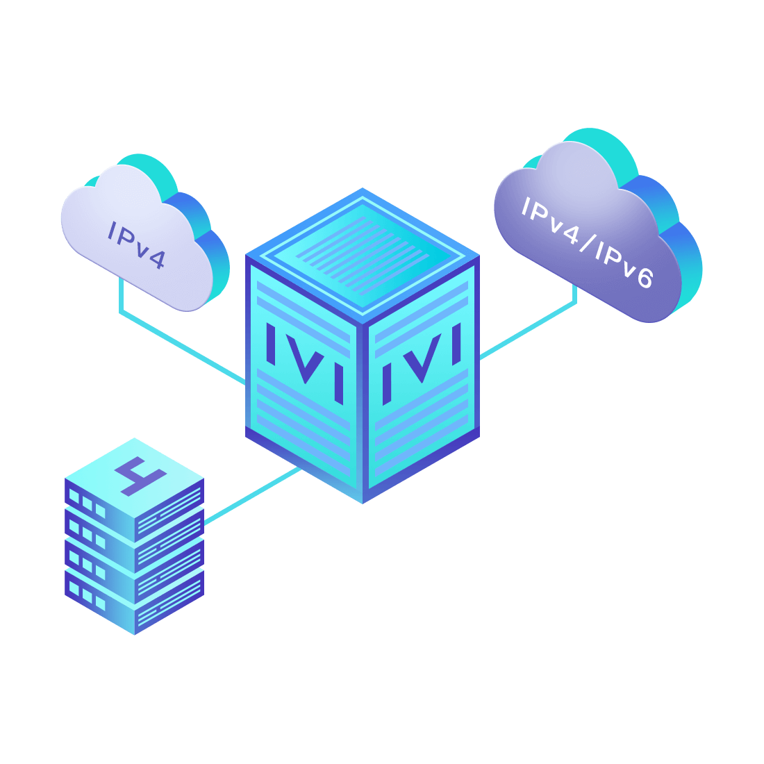 對正在進行IPv6整體升級規劃的運營商,應用IPv6升級方案2.5,通過IVI無狀態翻譯技術和純IPv6接入網絡,為雙棧客戶端和雙棧服務器提供連通服務。